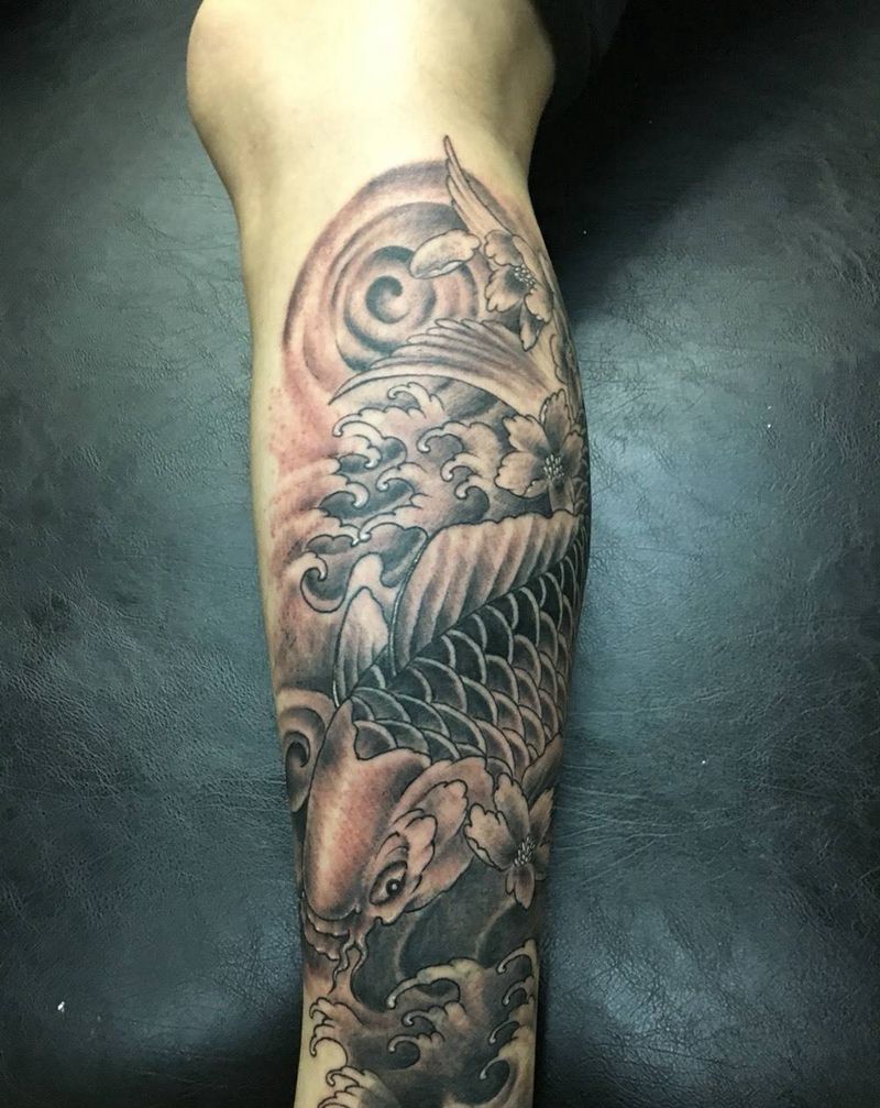 • T网红王老大花腿龙纹身图片_腿部新传统纹身图案