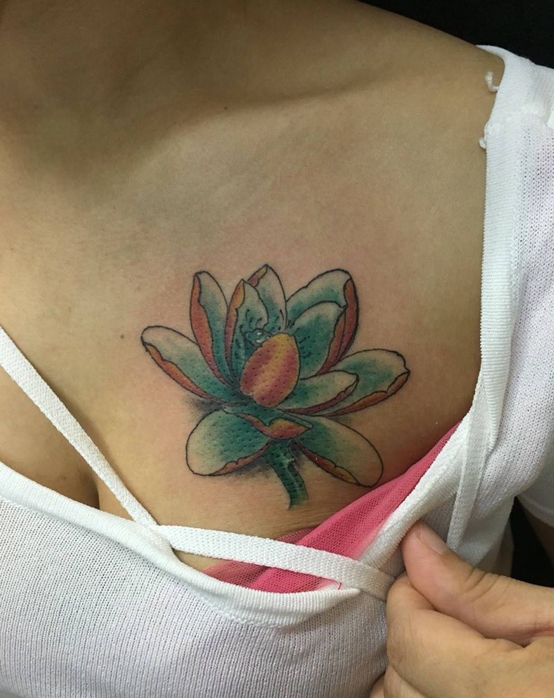 • 女性大花胸纹身_43张霸气漂亮的女性大花胸纹身图案作品