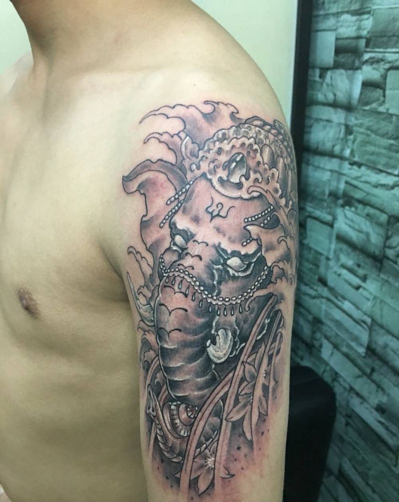 当前位置: 首页 >广东省深圳市纹身店-名海刺青纹身图案>小象纹身图片_成品手臂传统动物纹身图案