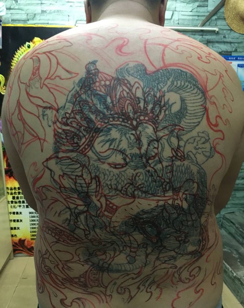当前位置: 首页 >广东省深圳市纹身店-名海刺青纹身图案>象神盖龙割线图,纹身图片_背部传统鬼神纹身图案