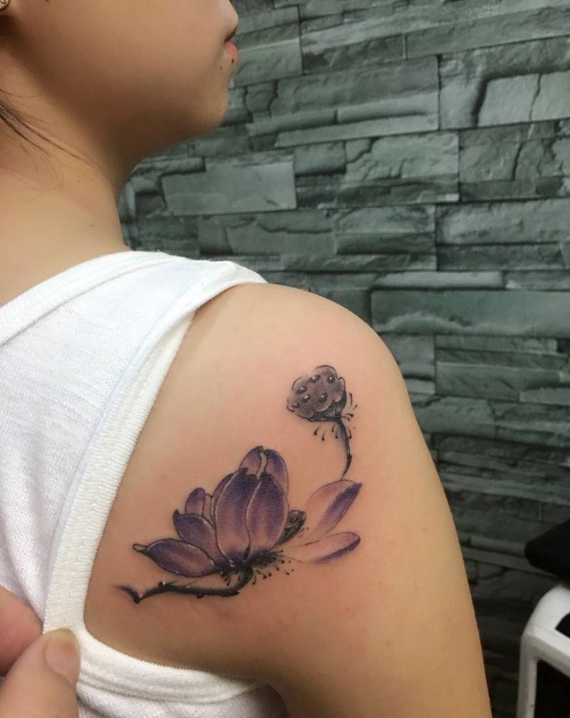 当前位置: 首页 >广东省深圳市纹身店-名海刺青纹身图案>莲纹身图片_成品肩部植物纹身图案