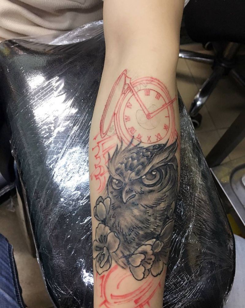 猫头鹰纹身图片_成品手臂动物纹身图案