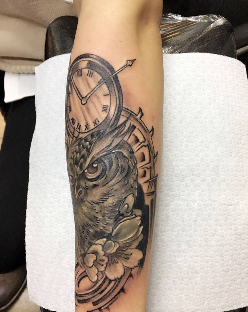 猫头鹰纹身图片_成品手臂动物纹身图案