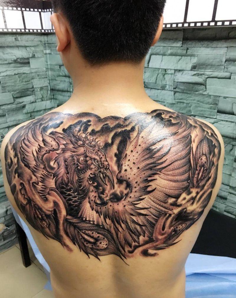 凤凰涅槃纹身图片_成品背部动物纹身图案
