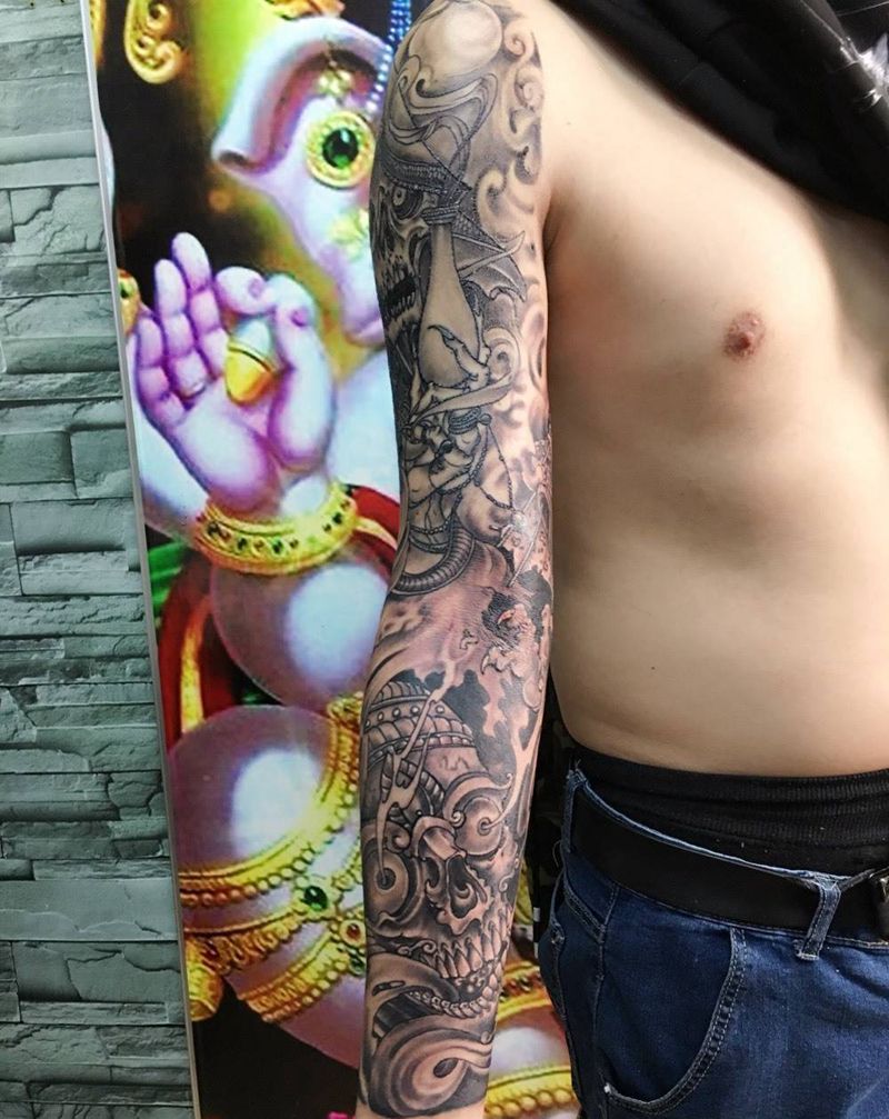 当前位置: 首页 >广东省深圳市纹身店-名海刺青纹身图案>花臂纹身图片_成品手臂传统鬼神纹身图案