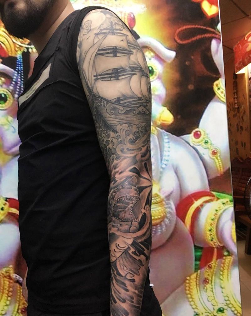 海上世界纹身图片_成品手臂纹身图案