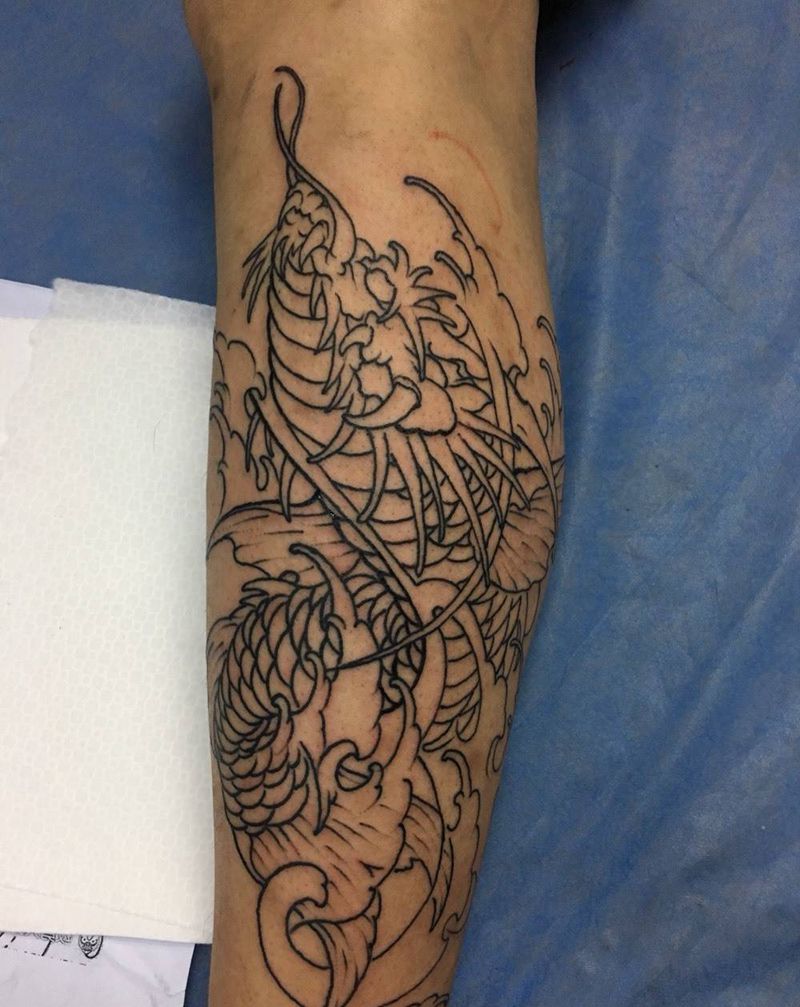 • T网红王老大花腿龙纹身图片_腿部新传统纹身图案