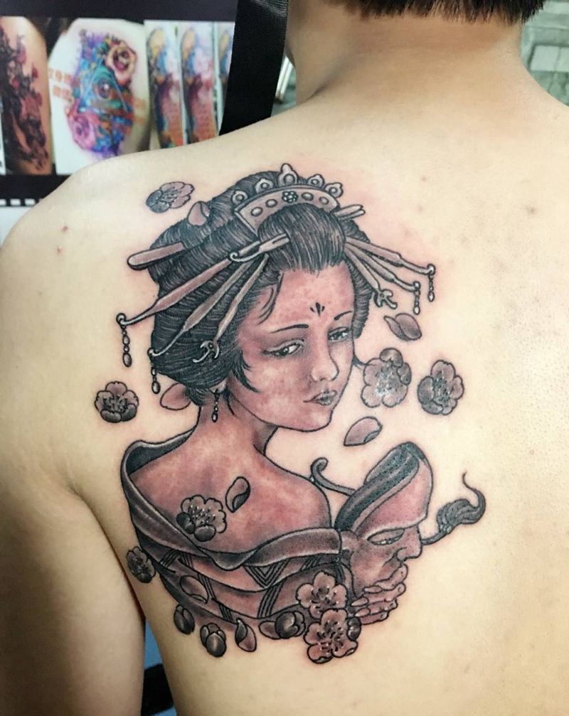 花姑娘纹身图片_成品背部习俗人物纹身图案