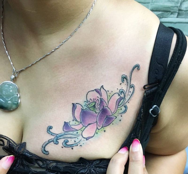 • 女性大花胸纹身_43张霸气漂亮的女性大花胸纹身图案作品