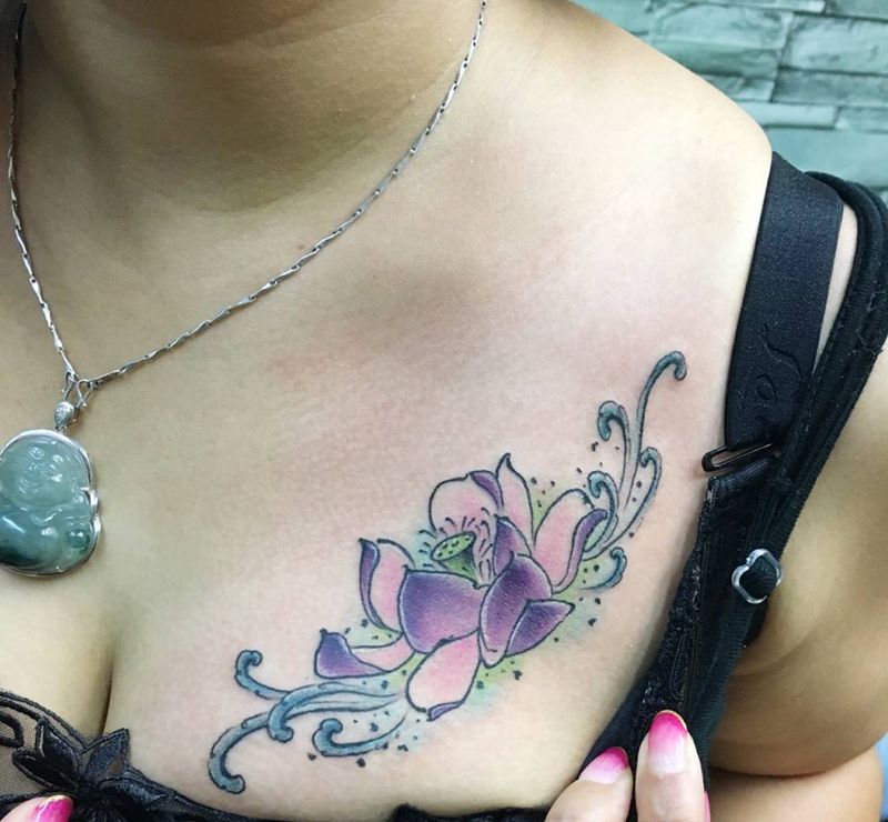 • 女性大花胸纹身_43张霸气漂亮的女性大花胸纹身图案作品