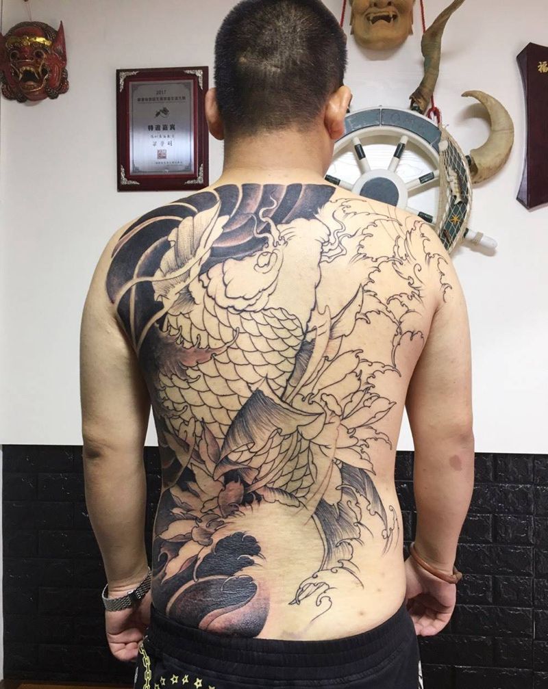 当前位置: 首页 >广东省深圳市纹身店-名海刺青纹身图案>鱼儿,未完待续!纹身图片_背部传统动物纹身图案