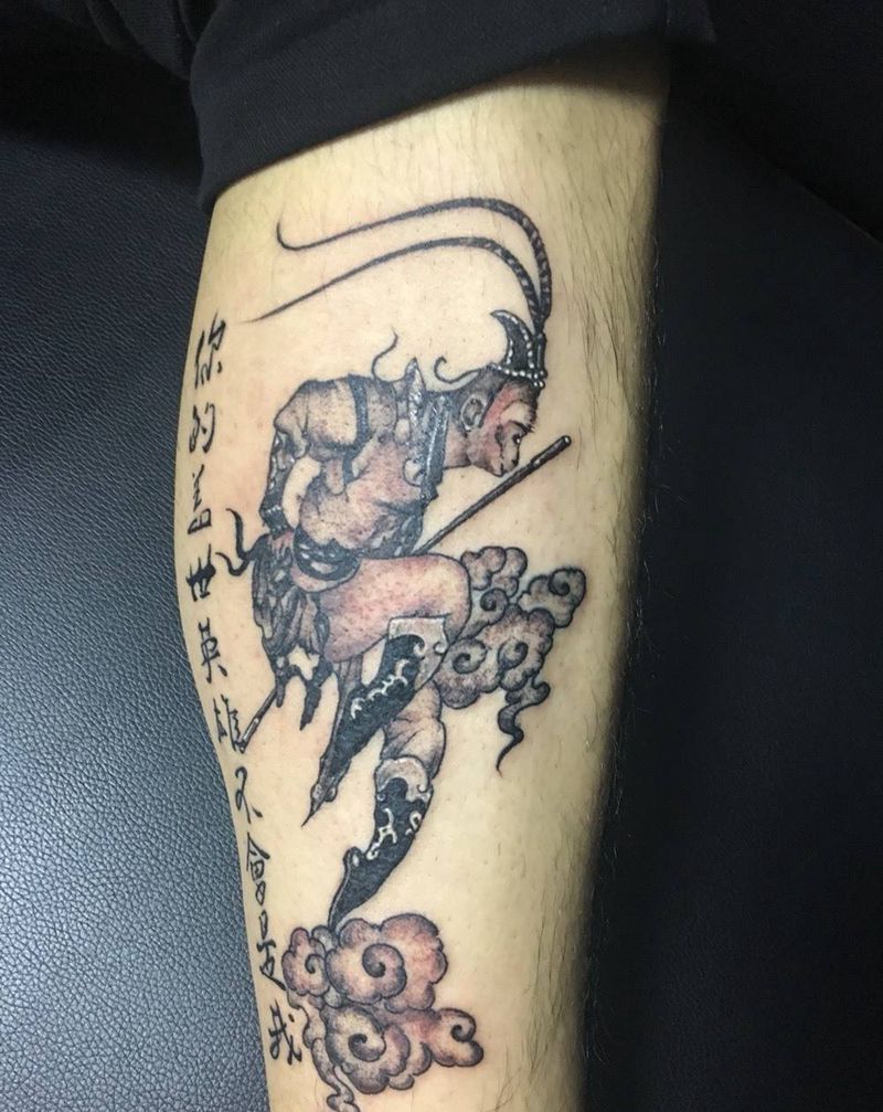 大圣归来纹身图片_成品腿部人物纹身图案