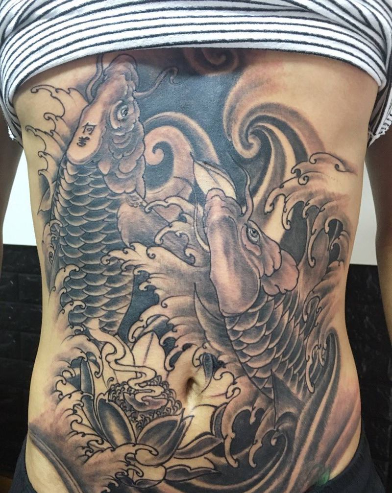 双鱼,未完待续!纹身图片_腹部新传统纹身图案