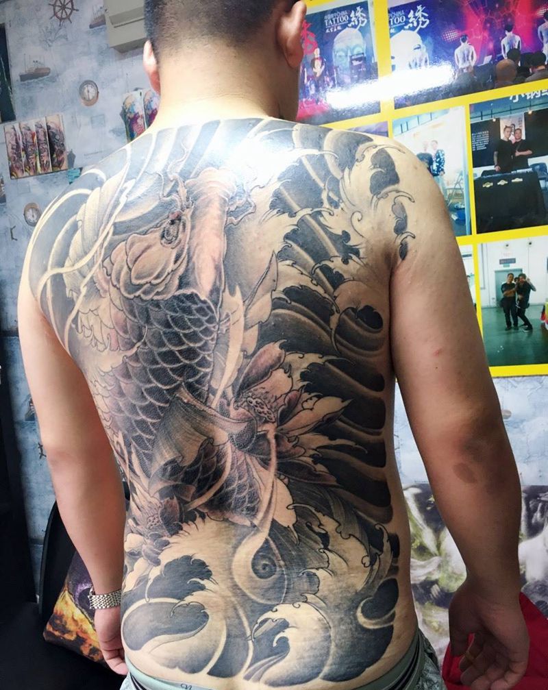 当前位置: 首页 >广东省深圳市纹身店-名海刺青纹身图案>大鱼纹身图片_成品背部传统纹身图案
