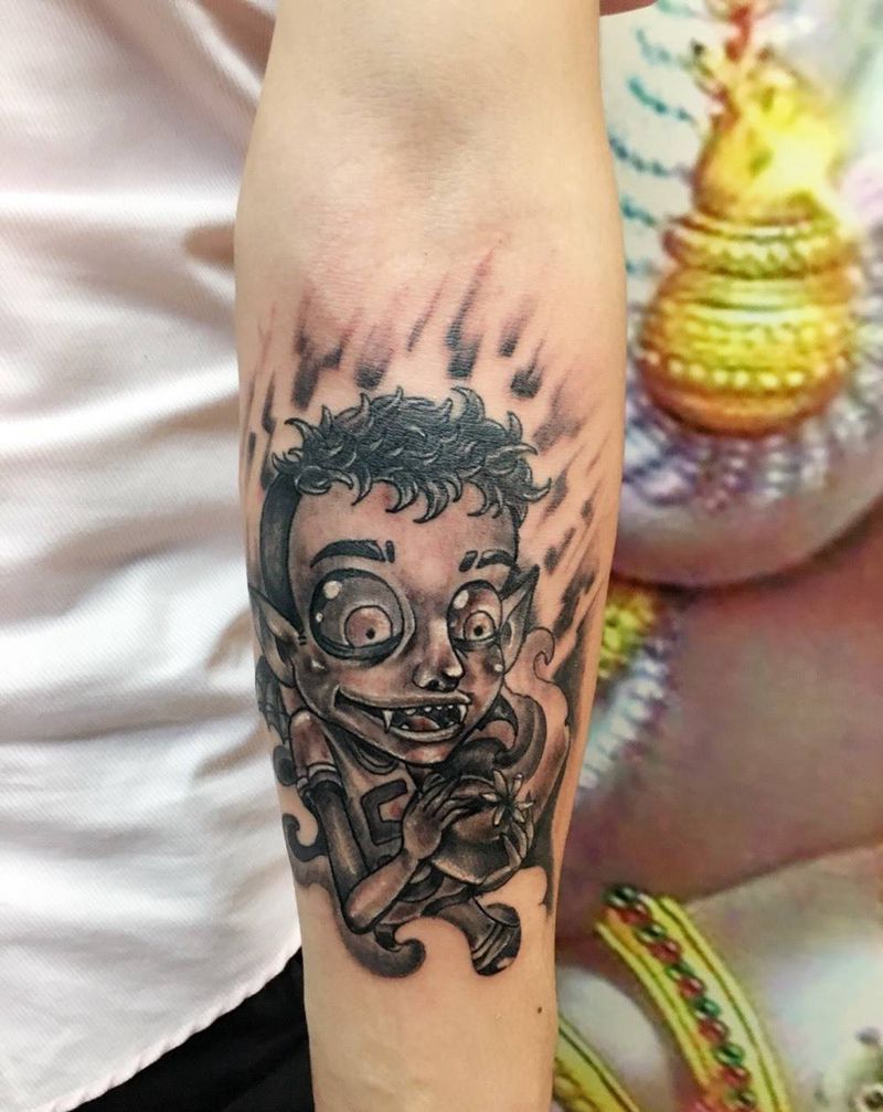当前位置: 首页 >广东省深圳市纹身店-名海刺青纹身图案>小怪纹身图片_成品手臂人物纹身图案