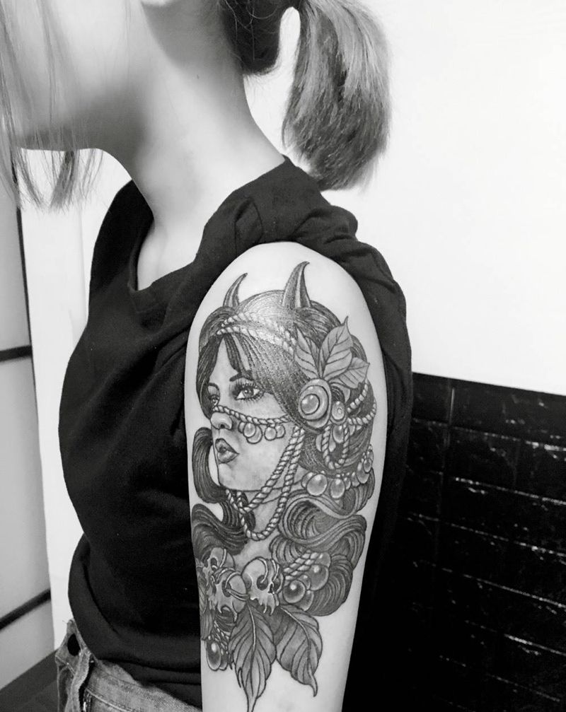 小妖纹身图片_成品手臂欧美人物纹身图案