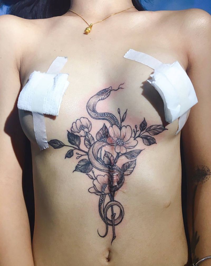 盖疤痕纹身图片_胸部新传统纹身图案