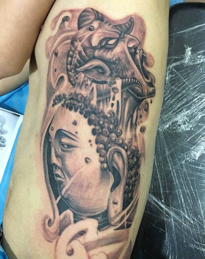 当前位置: 首页 >广东省深圳市纹身店-越狱纹身工作室纹身图案>佛与魔纹身图片_腰部纹身图案