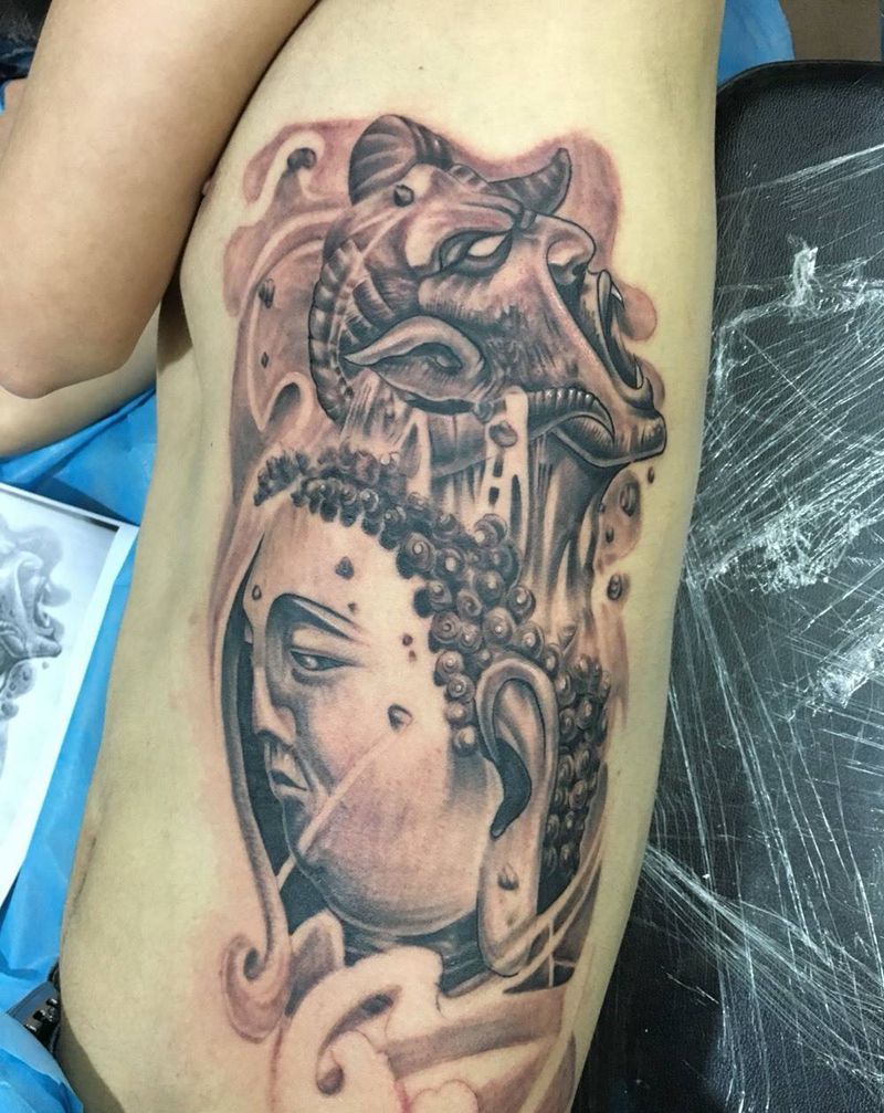 当前位置: 首页 >广东省深圳市纹身店-越狱纹身工作室纹身图案>佛与魔纹身图片_腰部纹身图案