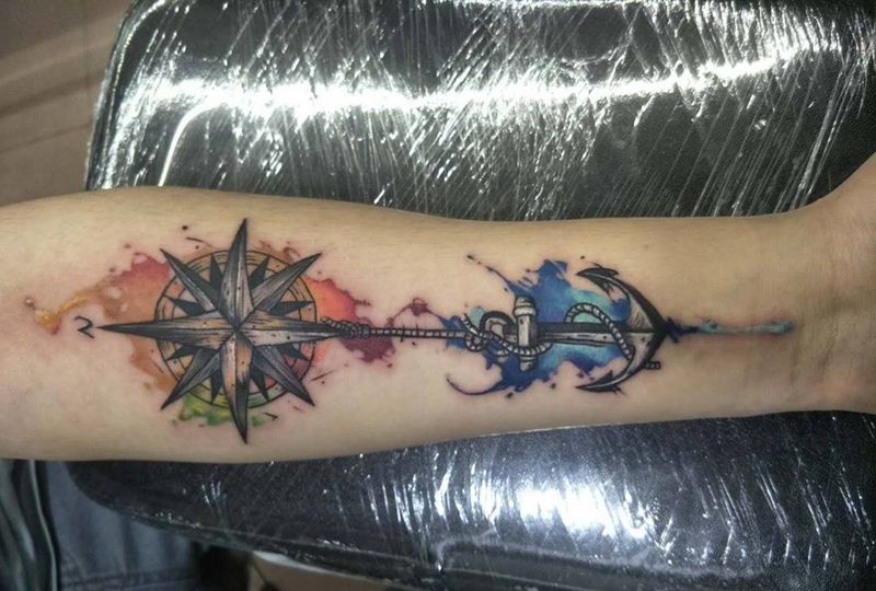 当前位置: 首页 >广东省深圳市纹身店-越狱纹身工作室纹身图案>彩色泼墨船锚纹身图片_手臂纹身图案