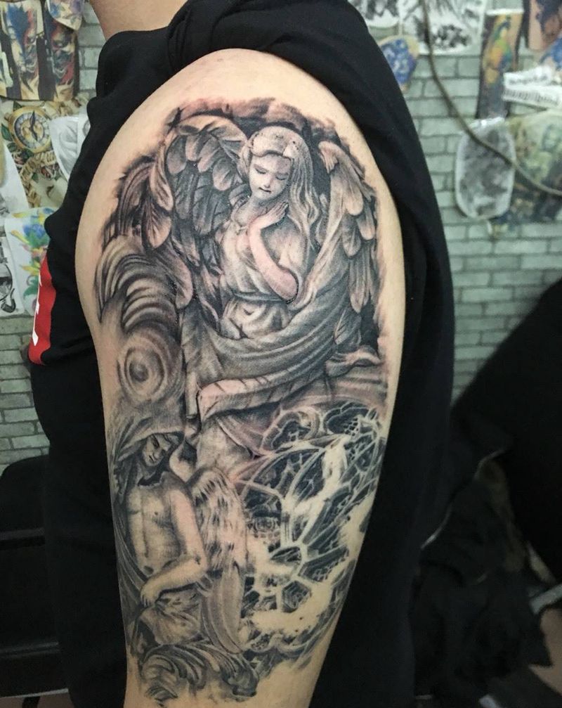 当前位置: 首页 >广东省深圳市纹身店-越狱纹身工作室纹身图案>天使 黑灰纹身图片