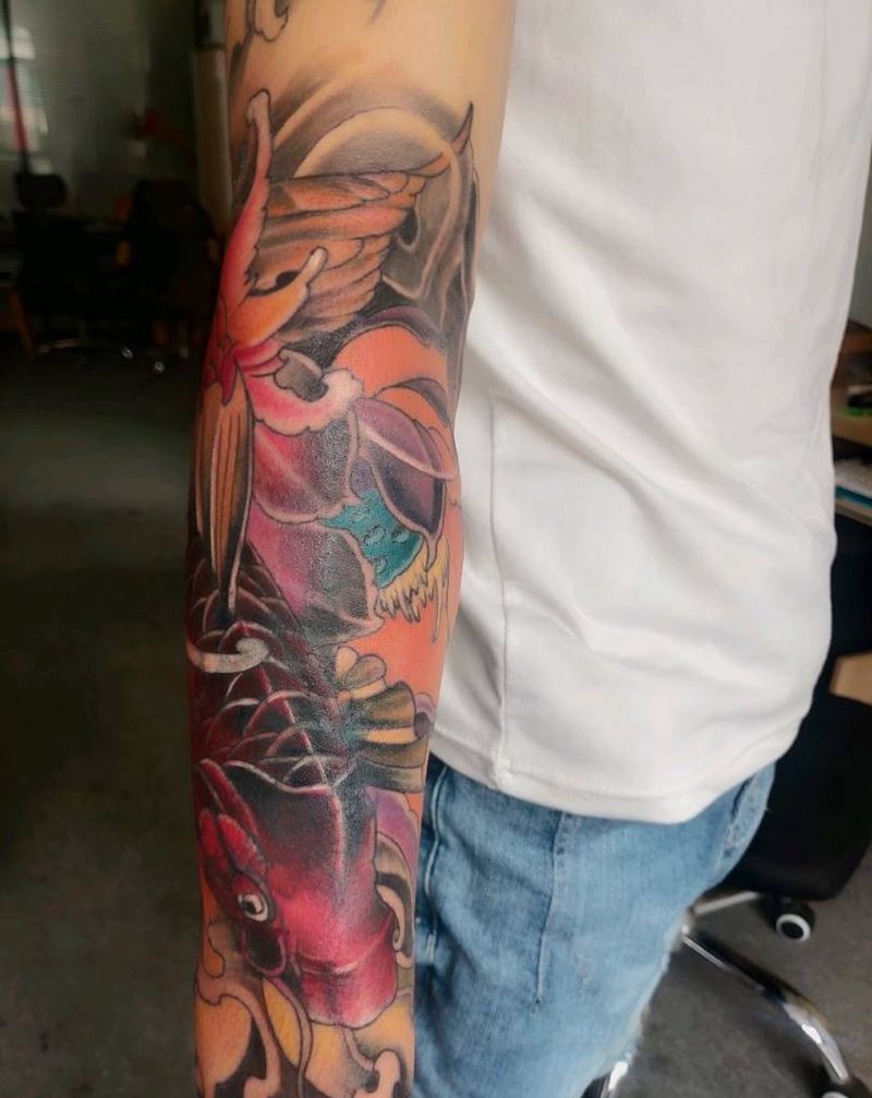 遮盖旧图纹身图片_手臂新传统纹身图案