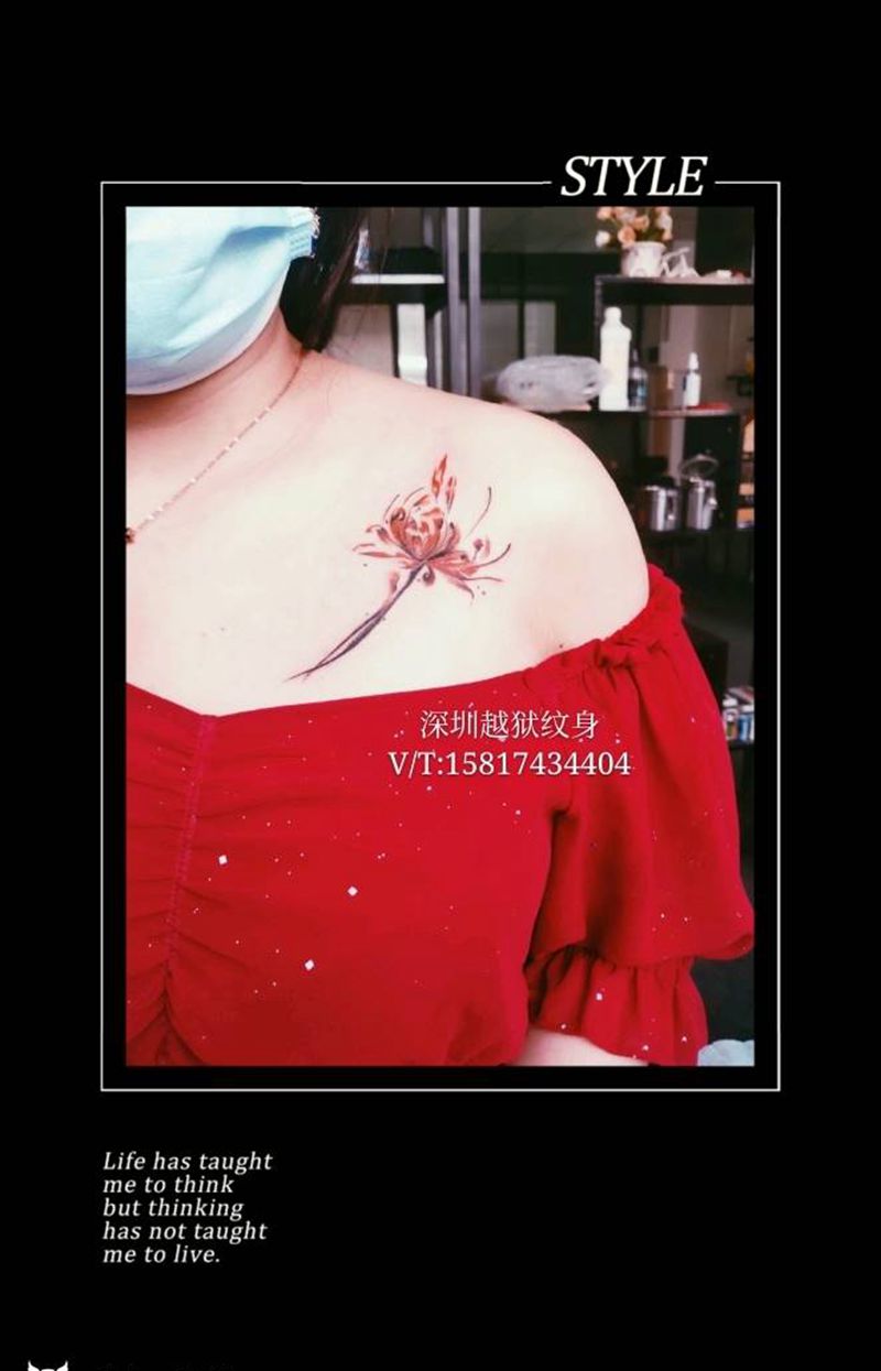当前位置: 首页 >广东省深圳市纹身店-越狱纹身工作室纹身图案>彼岸花纹身图片_胸部水彩纹身图案