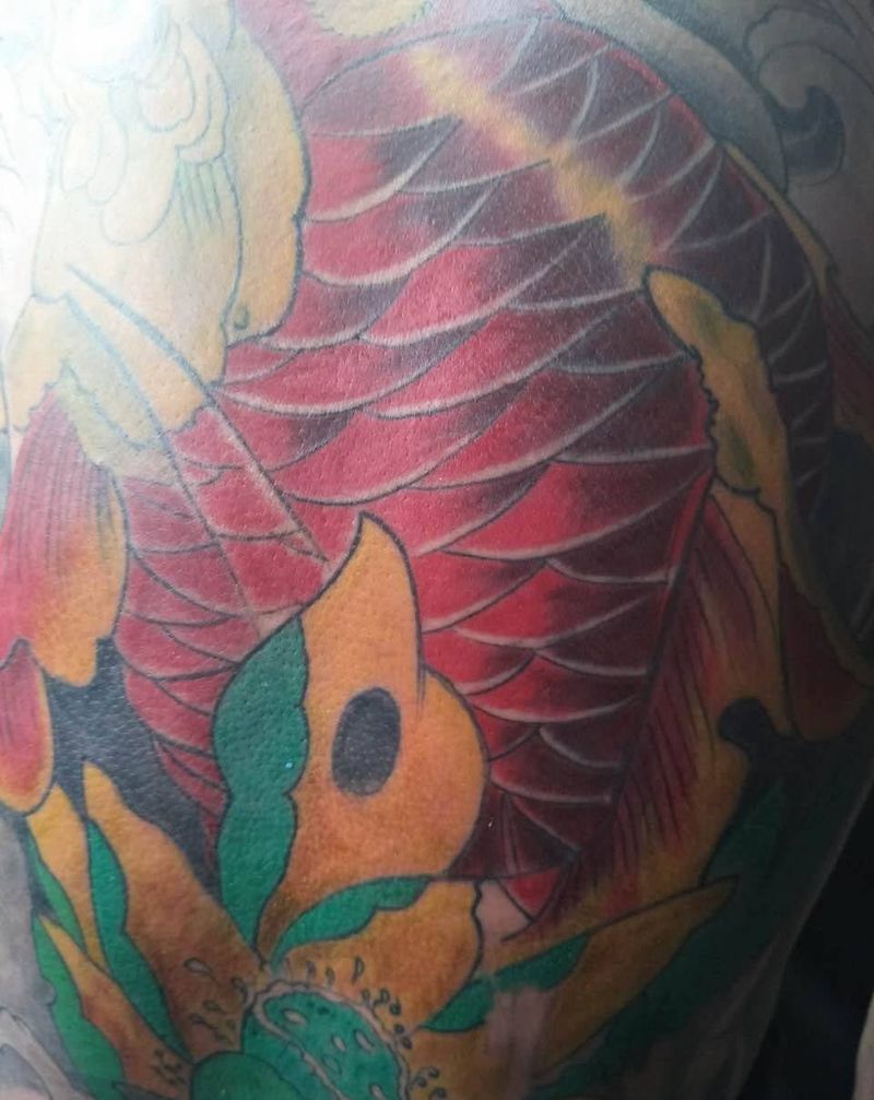 当前位置: 首页 >广东省深圳市纹身店-深圳-七道刺青社TATTOO STUDIO纹身图案>满背鲤鱼纹身图片_成品背部传统动物纹身图案