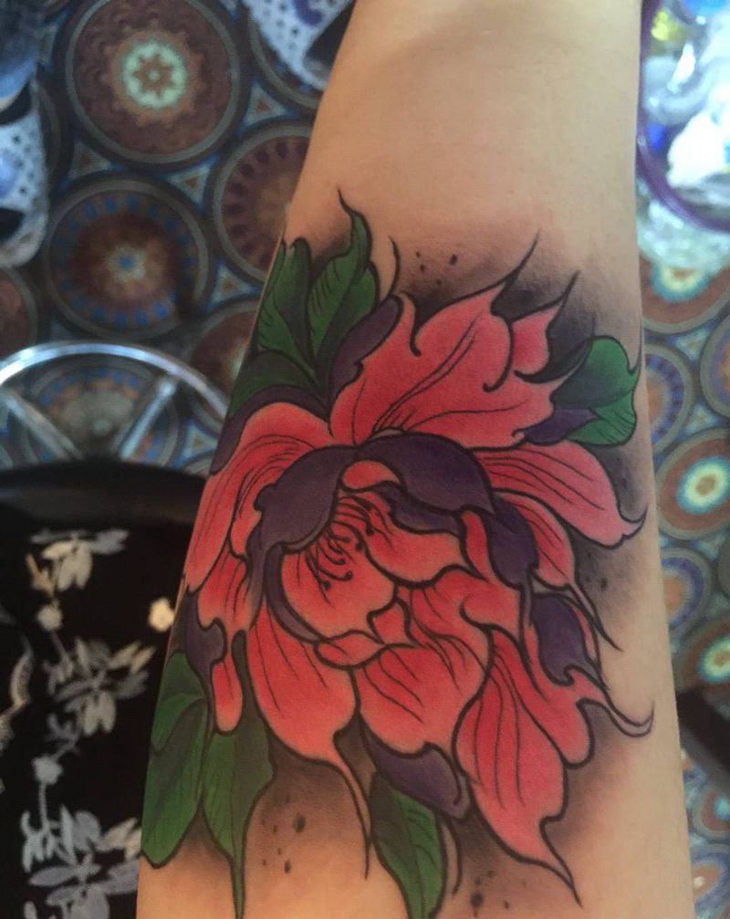 当前位置: 首页 >广东省深圳市纹身店-深圳-七道刺青社TATTOO STUDIO纹身图案>牡丹纹身图片_成品手臂传统植物纹身图案
