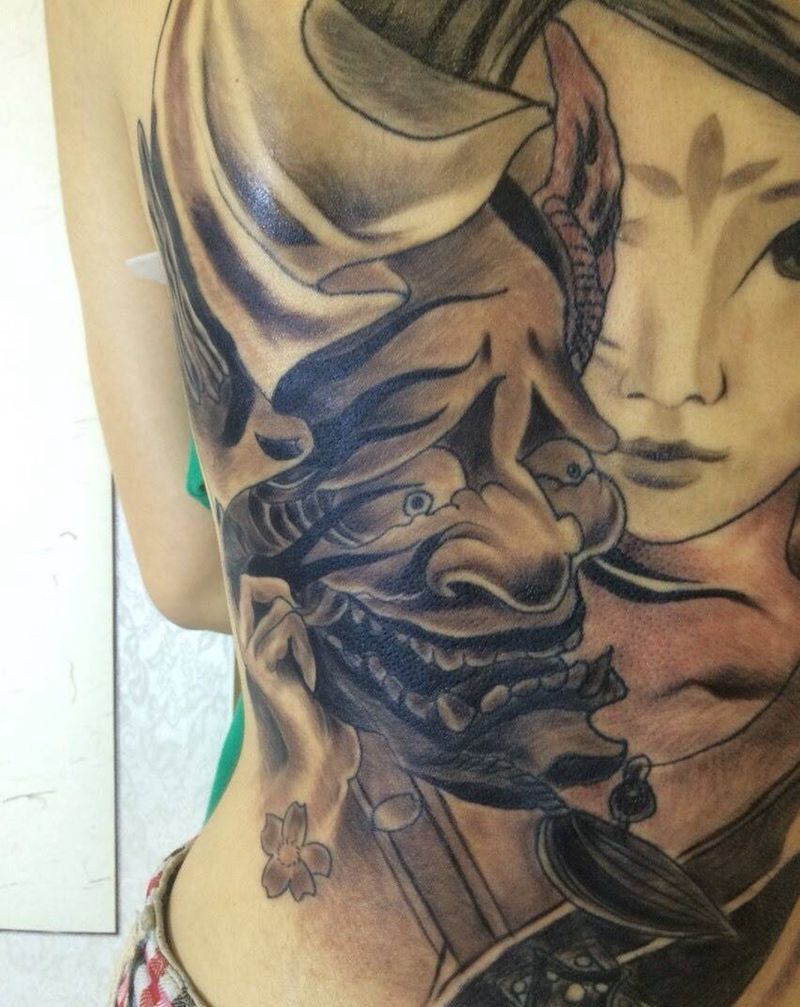 当前位置: 首页 >广东省深圳市纹身店-深圳-七道刺青社TATTOO STUDIO纹身图案>艺妓般若纹身图片_成品背部传统人物鬼神纹身图案
