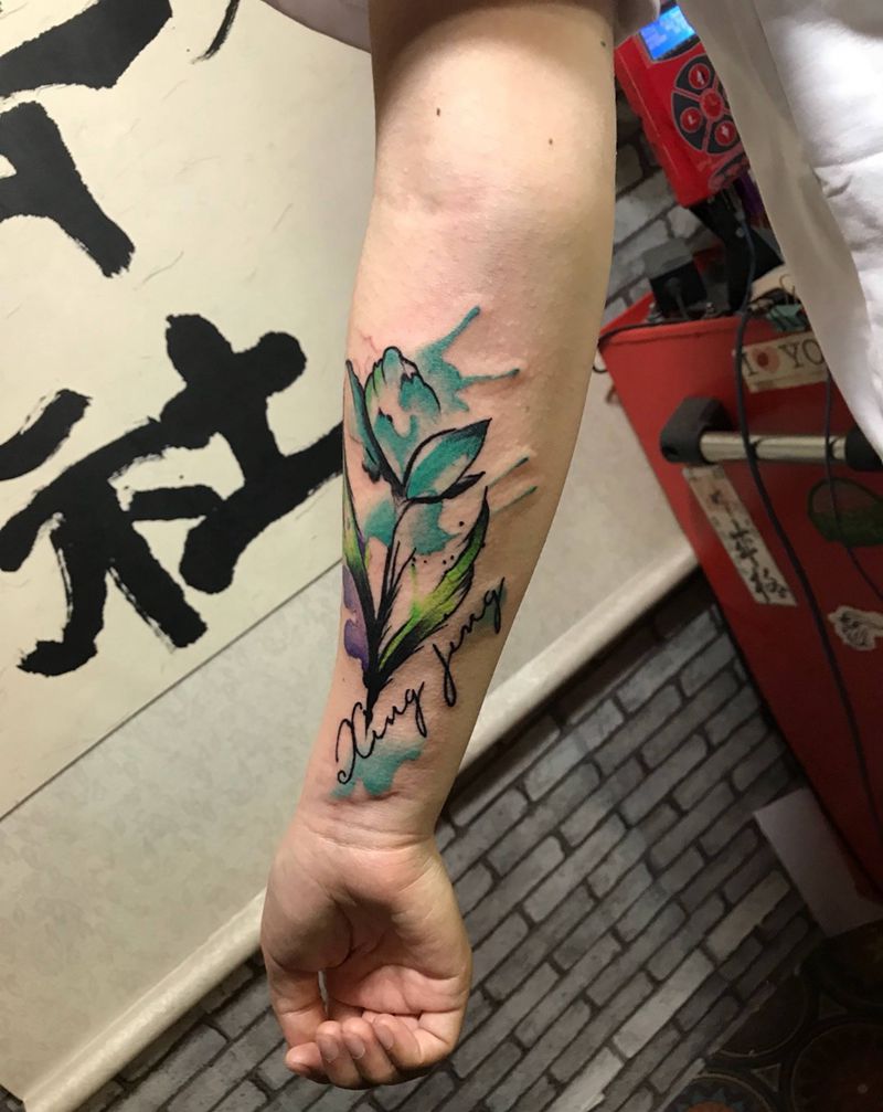 水彩泼墨纹身图片_手臂水彩水墨纹身图案