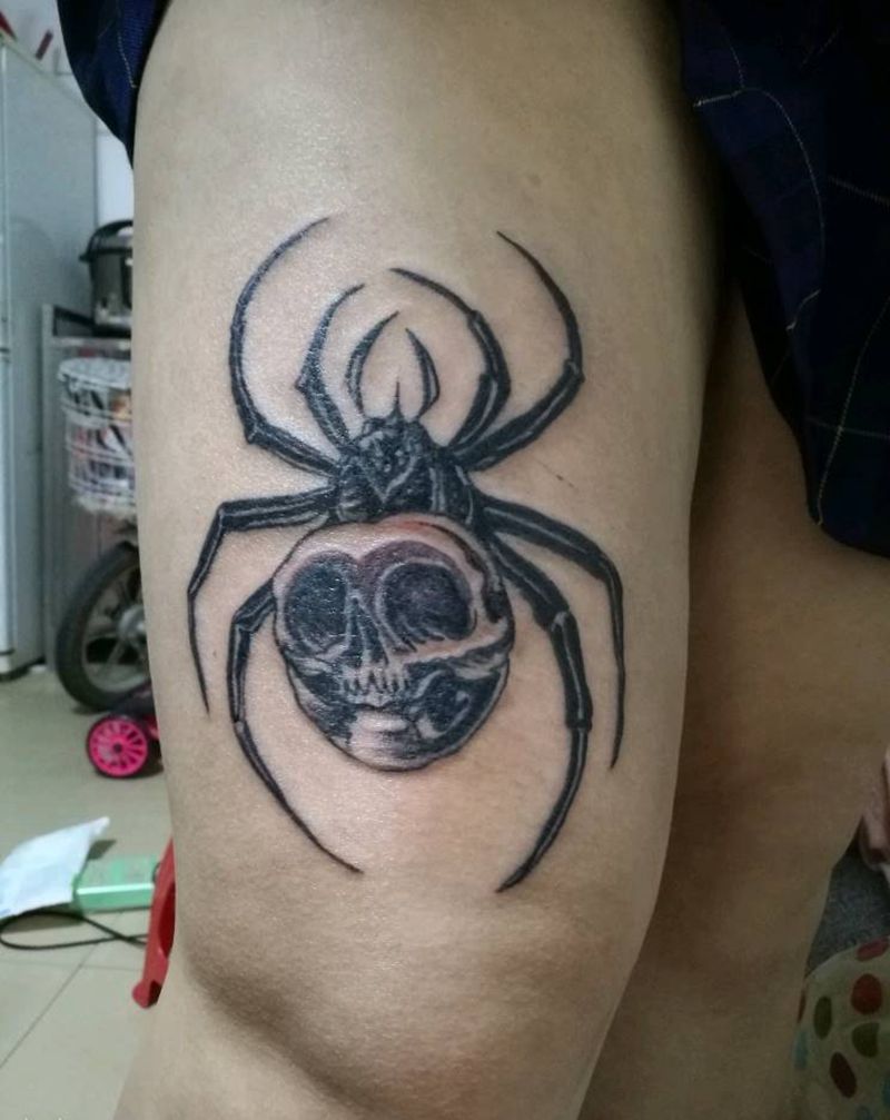 当前位置: 首页 >广东省深圳市纹身店-深圳龙华乐巷刺青工作室纹身图案>骷髅蜘蛛纹身图片
