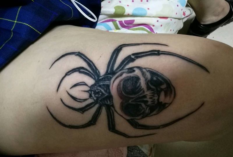 当前位置: 首页 >广东省深圳市纹身店-深圳龙华乐巷刺青工作室纹身图案>骷髅蜘蛛纹身图片