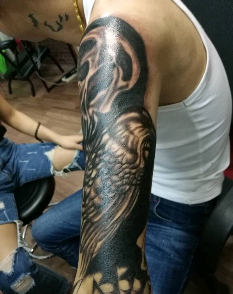 当前位置: 首页 >广东省深圳市纹身店-深圳龙华乐巷刺青工作室纹身图案>花臂继续纹身图片