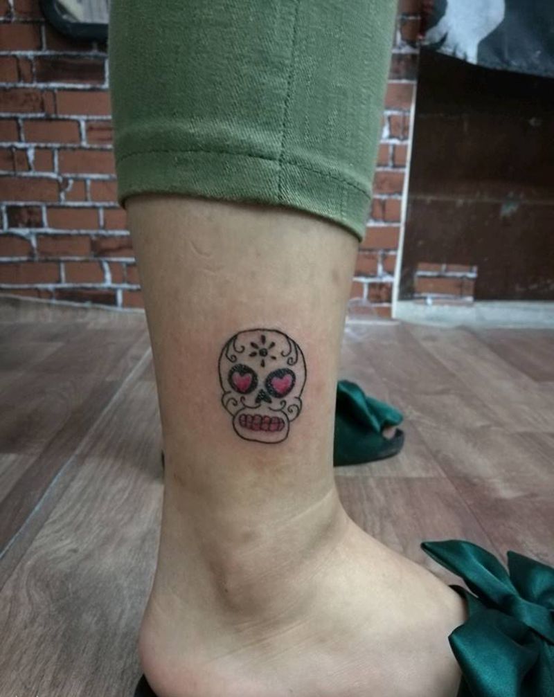 当前位置: 首页 >广东省深圳市纹身店-深圳龙华乐巷刺青工作室纹身图案>粉红骷髅头纹身图片
