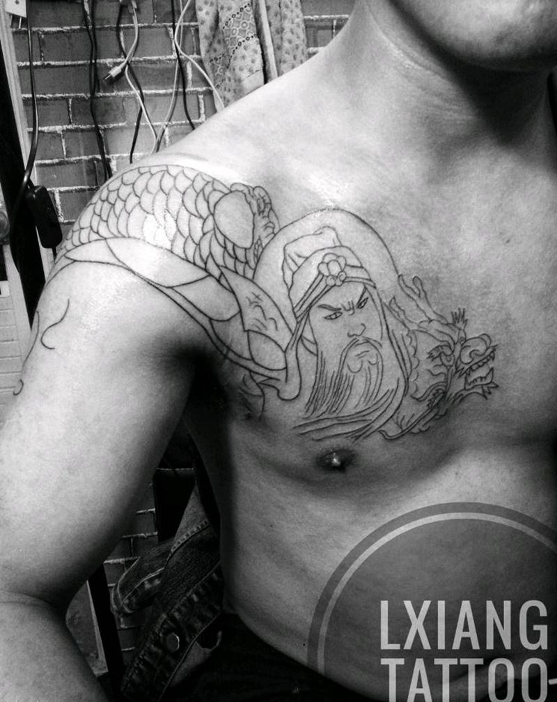 当前位置: 首页 >广东省深圳市纹身店-深圳龙华乐巷刺青工作室纹身图案>关公割线纹身图片
