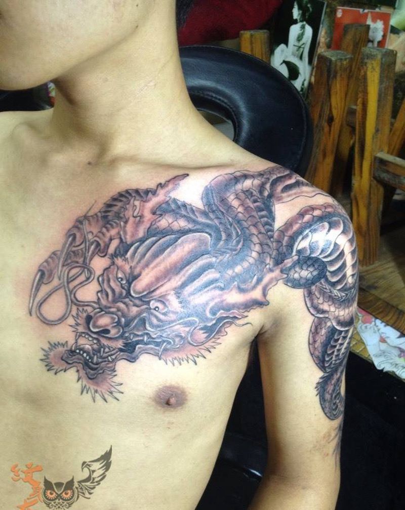 当前位置: 首页 >广东省深圳市纹身店-深圳鬼舞刺青工作室纹身图案>披肩龙纹身图片