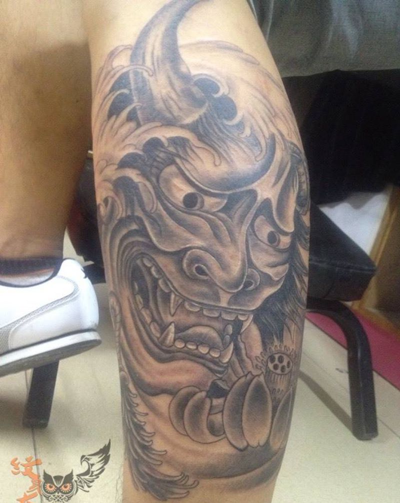 • T网红王老大花腿龙纹身图片_腿部新传统纹身图案
