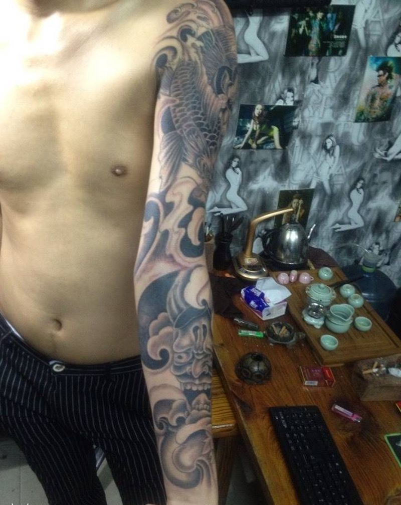 当前位置: 首页 >广东省深圳市纹身店-深圳鬼舞刺青工作室纹身图案>传统黑灰花臂纹身图片