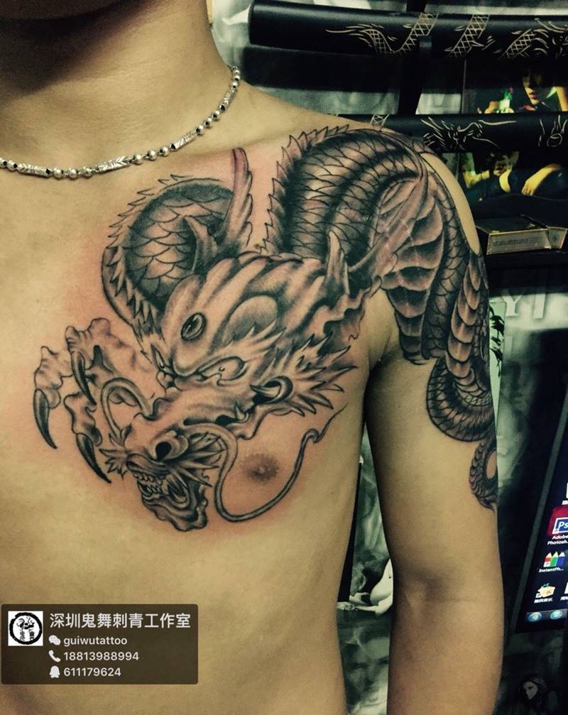 当前位置: 首页 >广东省深圳市纹身店-深圳鬼舞刺青工作室纹身图案>披肩龙纹身图片