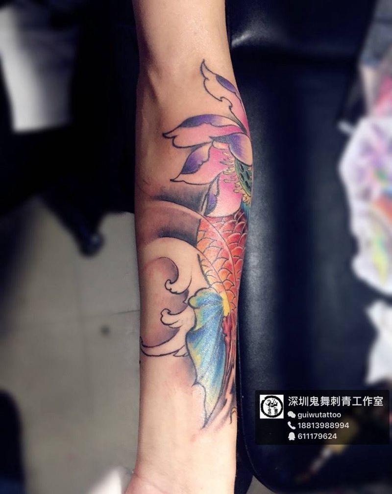 当前位置: 首页 >广东省深圳市纹身店-深圳鬼舞刺青工作室纹身图案>包小臂鲤鱼纹身图片