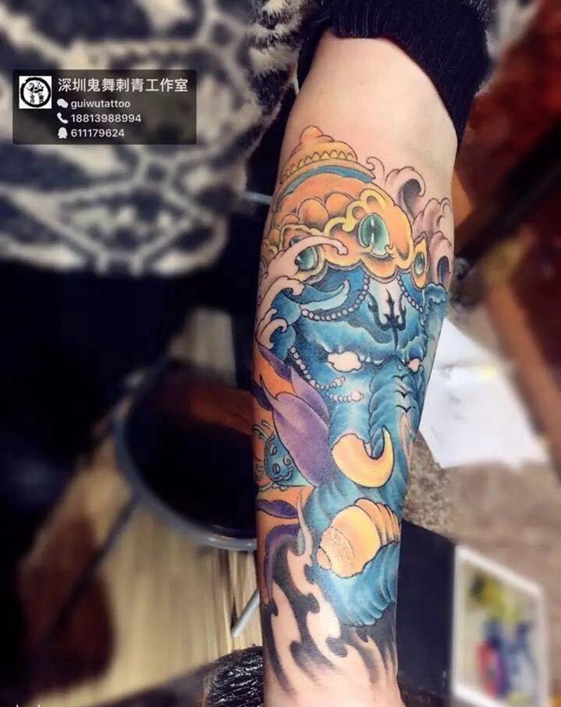 当前位置: 首页 >广东省深圳市纹身店-深圳鬼舞刺青工作室纹身图案>包小臂象神纹身图片