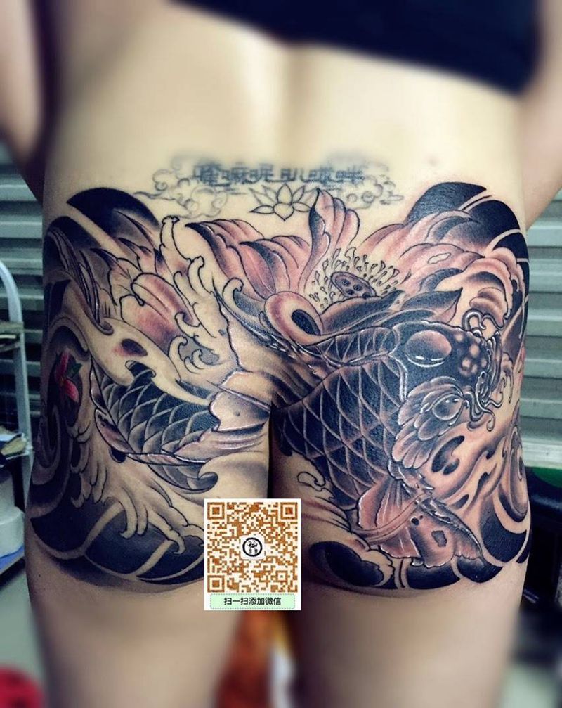 • T网红王老大花腿龙纹身图片_腿部新传统纹身图案