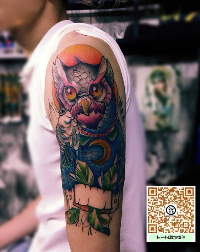 当前位置: 首页 >广东省深圳市纹身店-深圳鬼舞刺青工作室纹身图案>重彩猫头鹰纹身图片