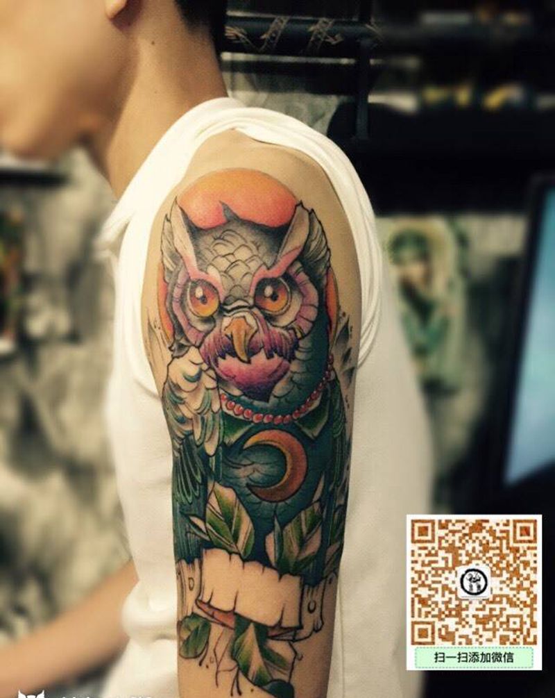 当前位置: 首页 >广东省深圳市纹身店-深圳鬼舞刺青工作室纹身图案>重彩猫头鹰纹身图片
