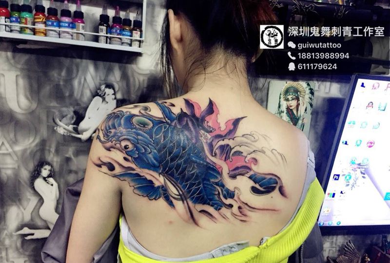当前位置: 首页 >广东省深圳市纹身店-深圳鬼舞刺青工作室纹身图案>鲤鱼遮盖纹身图片