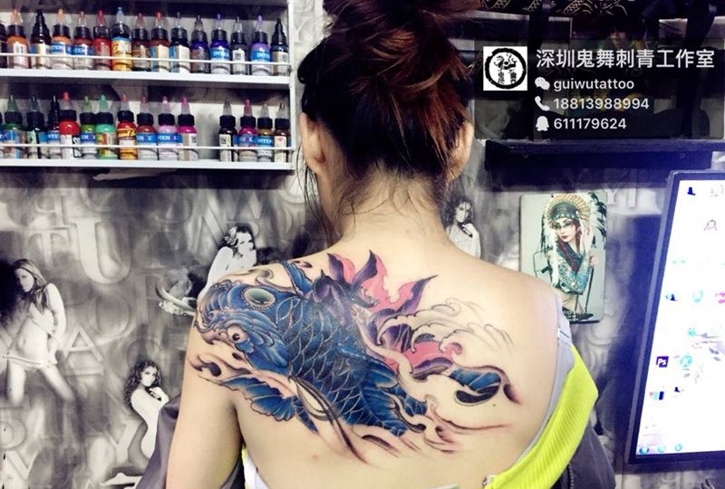 当前位置: 首页 >广东省深圳市纹身店-深圳鬼舞刺青工作室纹身图案>鲤鱼遮盖纹身图片