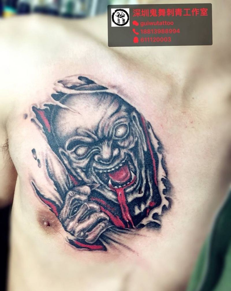当前位置: 首页 >广东省深圳市纹身店-深圳鬼舞刺青工作室纹身图案>撕皮骷髅纹身图片