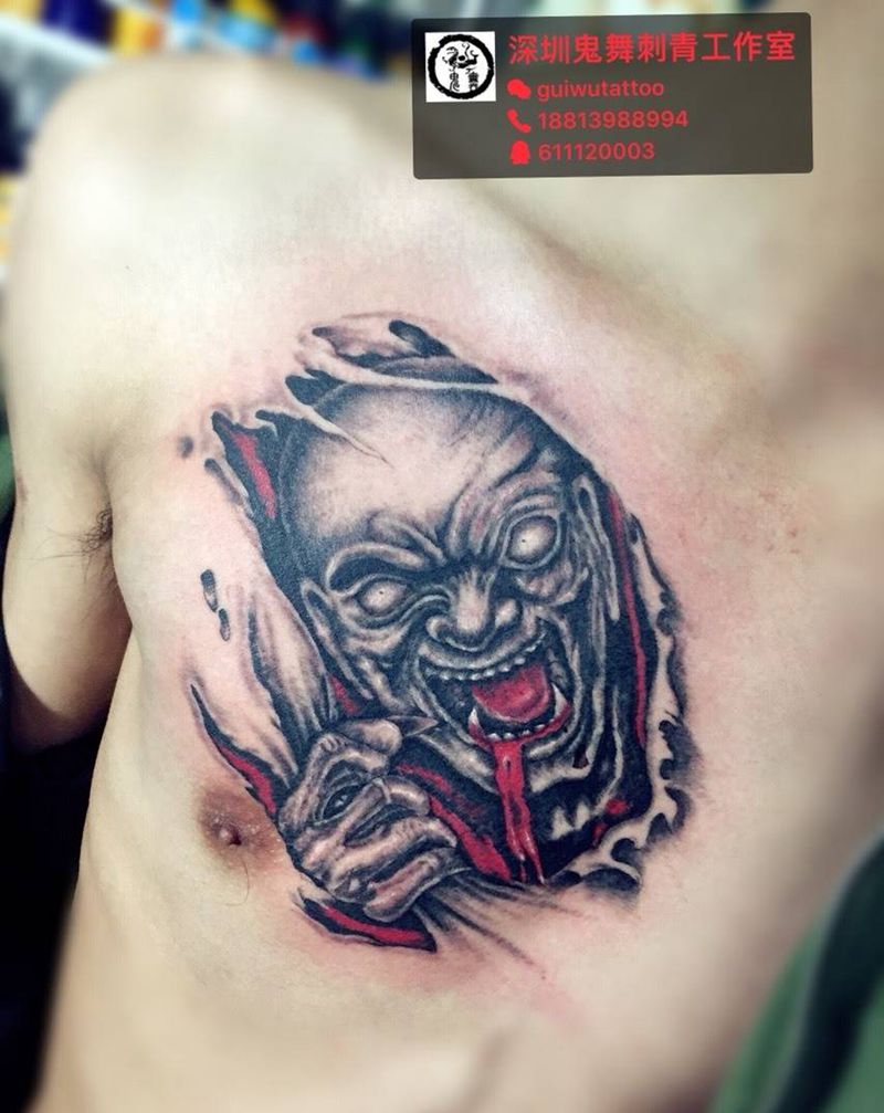 • 男性大花胸_42张优秀的男性大花胸纹身图案图片