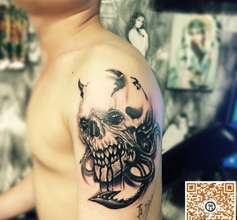 当前位置: 首页 >广东省深圳市纹身店-深圳鬼舞刺青工作室纹身图案>骷髅纹身图片